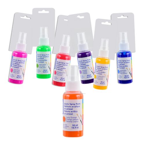 Non- aerosol spray paint. 50ml bottle – so many colours to choose from! Works on fabric, canvas, and lots more!