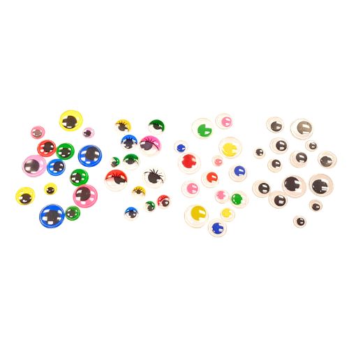 Black and white or Coloured wiggling eyes. Comes in assorted sizes.